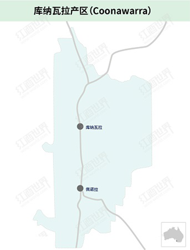 庫(kù)納瓦拉產(chǎn)區(qū)坐落在南澳州的石灰?guī)r海岸(Limestone Coast)的中心地帶,與維多利亞州(Victoria)比鄰而居,整個(gè)產(chǎn)區(qū)呈南北狹長(zhǎng)狀分布,長(zhǎng)約15公里,平均寬度僅有1.5公里,在整個(gè)澳大利亞版圖上顯得十分袖珍。不過(guò),這里卻是澳大利亞最古老的葡萄酒產(chǎn)區(qū)之一,葡萄種植歷史最早可追溯至1891年。當(dāng)年,來(lái)自蘇格蘭的約翰·瑞多克(John Riddoch)在這片土地上種下了第一批葡萄樹,進(jìn)而創(chuàng)建了科莫酒莊(Chateau Comaum)??上У氖牵虍?dāng)?shù)亟?jīng)濟(jì)落后,且遠(yuǎn)離主要消費(fèi)群體,該酒莊當(dāng)時(shí)并沒(méi)有發(fā)展起來(lái)。