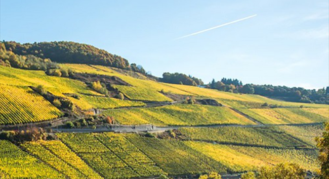 摩澤爾產(chǎn)區(qū)地形獨(dú)特,河流流經(jīng)的地區(qū)兩側(cè)多為陡峭的山坡,產(chǎn)區(qū)內(nèi)的葡萄園就分布在這些斜坡之上。其中,朝南的葡萄園由于能夠獲得最大程度的陽光直射,條件最為優(yōu)渥。過高的坡度為機(jī)械化帶來了很大的難度,因而這里葡萄的種植與采收絕大部分都是靠人工完成的。