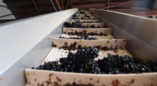 13. 經過篩選后的葡萄會進入除梗機中進行去梗。大部分酒莊現在使用的是去梗和破碎一體化的機器,所以在去梗的同時,葡萄果實可能會被輕微壓榨或者完全壓榨(白葡萄品種)。