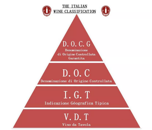 意大利的葡萄酒分級制分4個等級,從高到低依次為:DOCG(最高級)、DOC、IGT、VDT(普通等級餐酒)。不過,這個分級制度僅供參考,因?yàn)橐灿泻芏嗑魄f認(rèn)為一些規(guī)定太死板,而不搞這套,有時一些意大利頂級葡萄酒竟然只標(biāo)VDT或IGT也不足為奇。