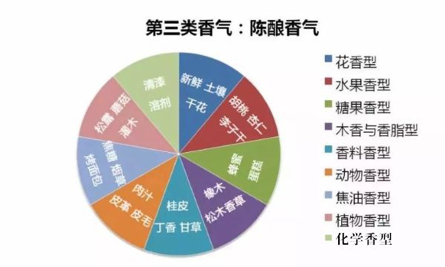 簡單來說,如果你品鑒一瓶葡萄酒時,聞到水果的味道,那就是一類香氣;如果聞到奶油、甜點類的香氣那就是二類香氣;三類香氣則更加復(fù)雜與廣泛,花香、糖果香、動物香型都是三類香氣的分支,這下你直到這三類香氣是如何區(qū)分的了么?