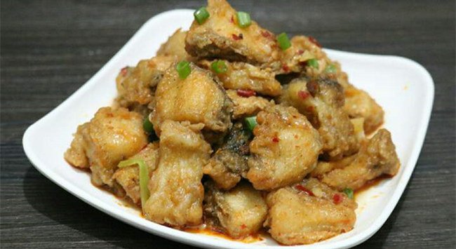黃燜魚酥:此菜色澤金黃,外殼香酥,內(nèi)含鹵汁,油潤(rùn)爽口,味道鮮美配干白或桃紅葡萄酒。