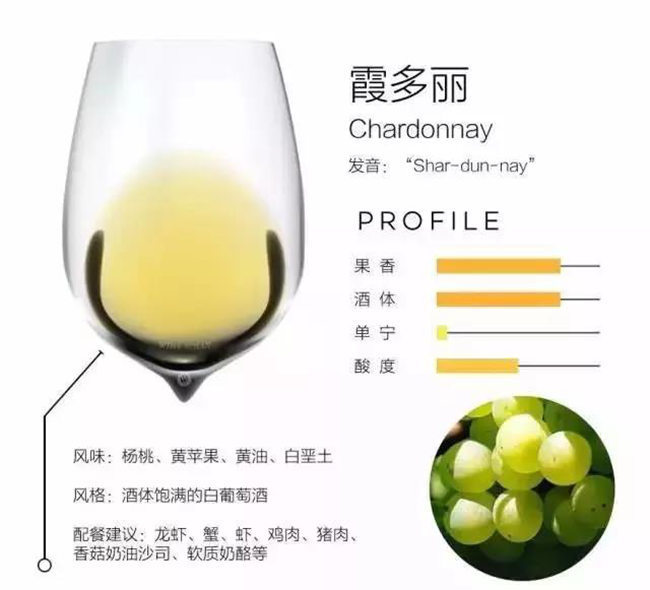 未經橡木桶熟成的霞多麗則更加輕盈、蘋果和柑橘的風味明顯。法國勃艮第(Burgundy)的霞多麗白葡萄酒非常有名。