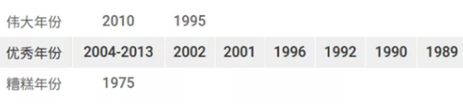 不過,論起勃艮第的年份,許多人卻未必熟悉。若談及拉菲(Lafite),我們都知道82年拉菲是經典好酒,而2012、2013等年份則無法讓葡萄酒發(fā)燒友感到興奮。波爾多的經典年份在葡萄酒愛好者心中早已深入人心,但勃艮第的年份又應該如何排位呢?