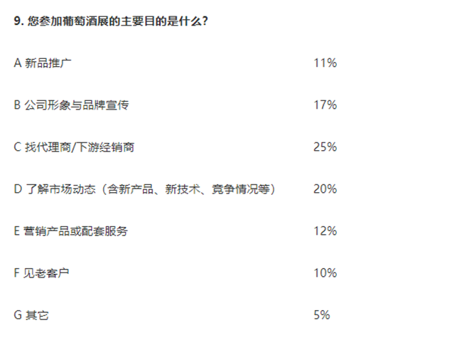 9. 25%企業(yè)均參加葡萄酒展的主要目為尋找代理商/下游經(jīng)銷商