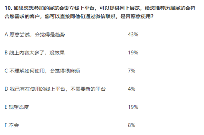 10. 43%的企業(yè)愿意嘗試網(wǎng)上展會(huì)。