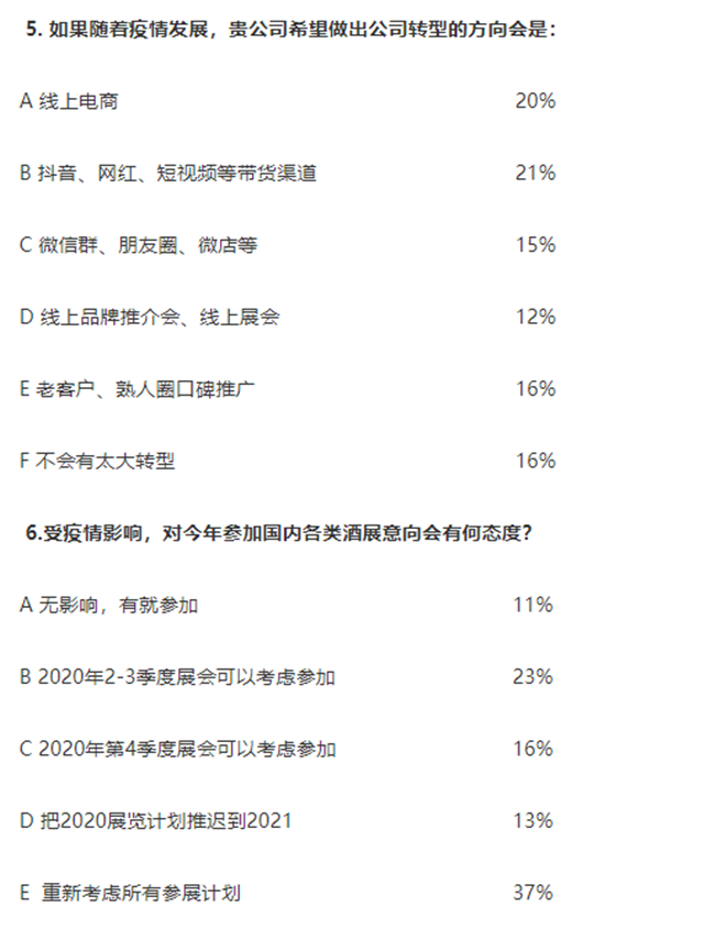5. 68%的企業(yè)對(duì)線上形式的轉(zhuǎn)型方向感興趣,包括:線上電商、抖音、網(wǎng)紅、短視頻微、信群、朋友圈、微店、線上品牌推介會(huì)、線上展會(huì)等渠道。
