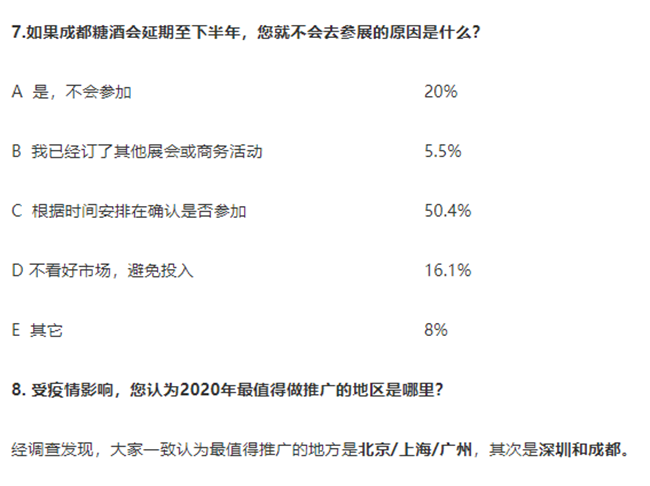 7. 50.4%的企業(yè)在觀望成都春季糖酒會(huì)的延期時(shí)間以便確認(rèn)是否參加。