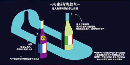 意大利葡萄酒在加拿大市場的反響最好,其中2/3的專業(yè)人士將其列入2017銷售表現(xiàn)前三位,56%的人預(yù)計未來兩年,意大利葡萄酒將會出現(xiàn)較大的銷售增長。