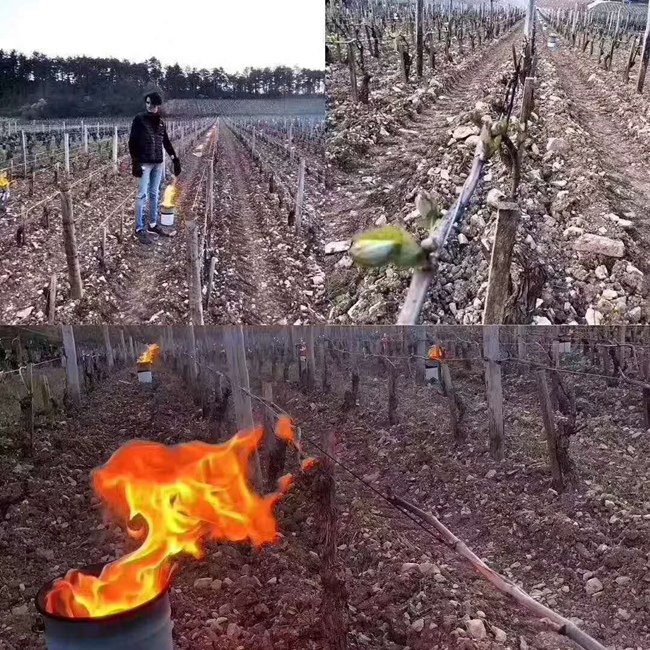 南非葡萄酒進(jìn)口商Great Domaines發(fā)布推特如此描述:此時(shí),不同尋常的低溫讓許多酒農(nóng)生火抗凍。上百人被動(dòng)員在日出之前用麥稈生火,制造煙霧屏障,并點(diǎn)燃火盆去提升氣溫以保護(hù)葡萄騰的芽。