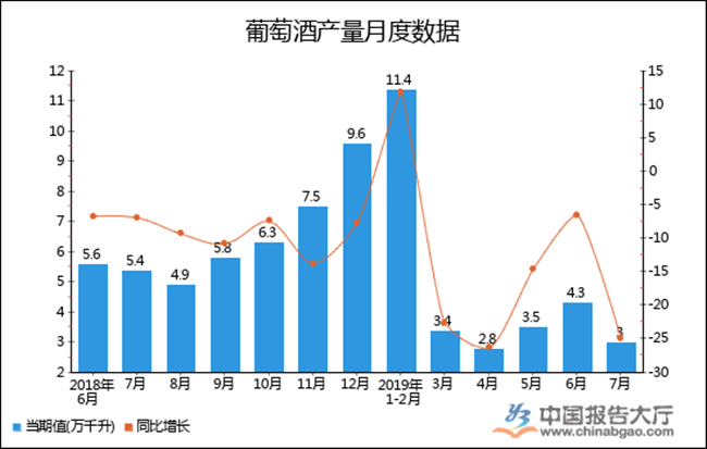 以上就是2019年1-7月全國葡萄酒產(chǎn)量統(tǒng)計(jì),數(shù)據(jù)來源于國家統(tǒng)計(jì)局及中國報(bào)告大廳數(shù)據(jù)中心整理發(fā)布,僅供參考。