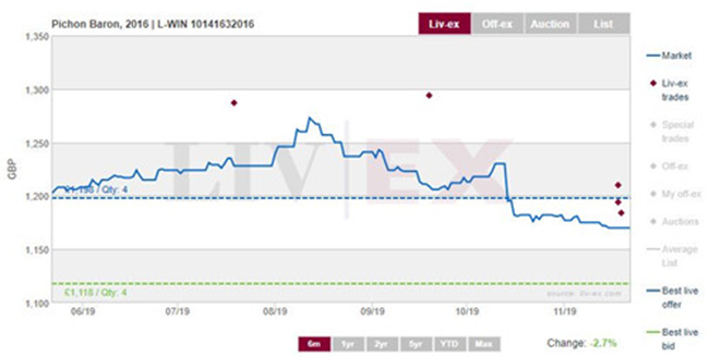 上周五,自巴頓Leoville Barton 2016年被Wine Spectator評(píng)為2019年度最佳葡萄酒后,此酒隨即出現(xiàn)一陣熱買和價(jià)格上漲。在幾個(gè)小時(shí)內(nèi),它的成交價(jià)更創(chuàng)歷史新高,高達(dá)1,166英鎊 (每箱12×75) 。